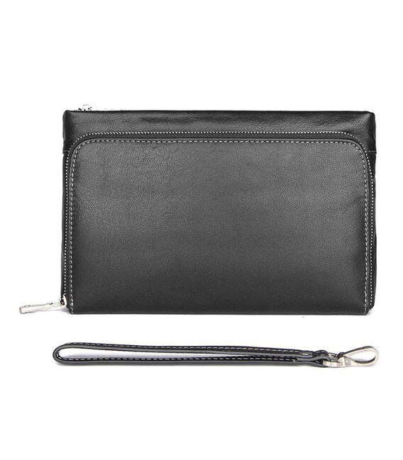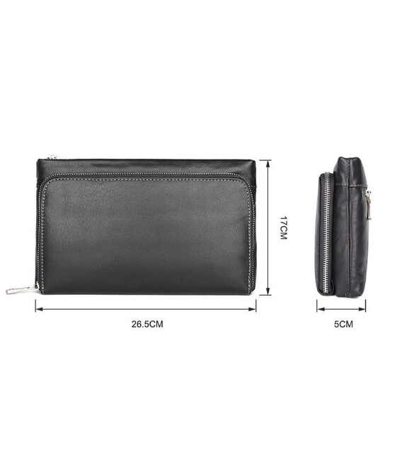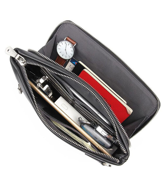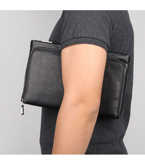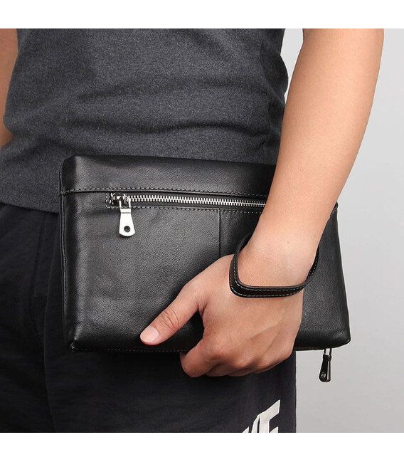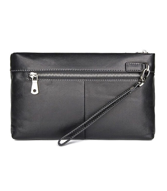 Описание Шкіряний клатч для чоловіків JDC011LA чорний з петлею та передньою кишенею