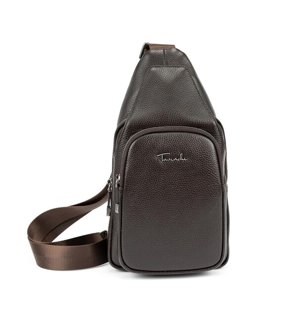 Описание Мужской кожаный коричневый слинг на плечо Tavinchi TV-SM8-681C-1