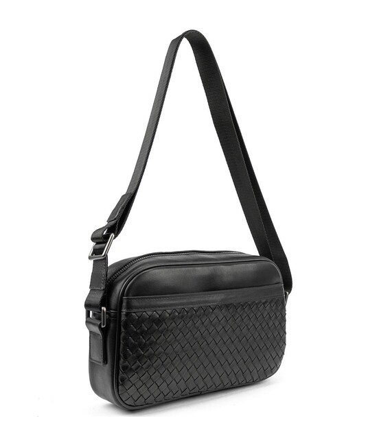 Описание Кожаная мужская плетеная сумка черного цвета TIDING BAG 883621-2A