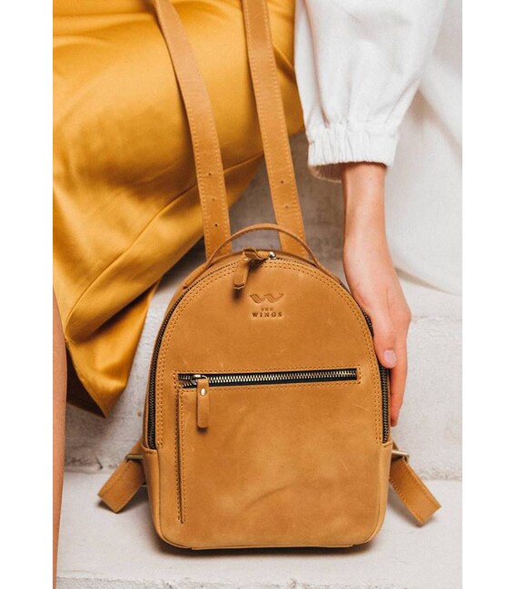 Описание Кожаный рюкзак Groove S желтый винтажный