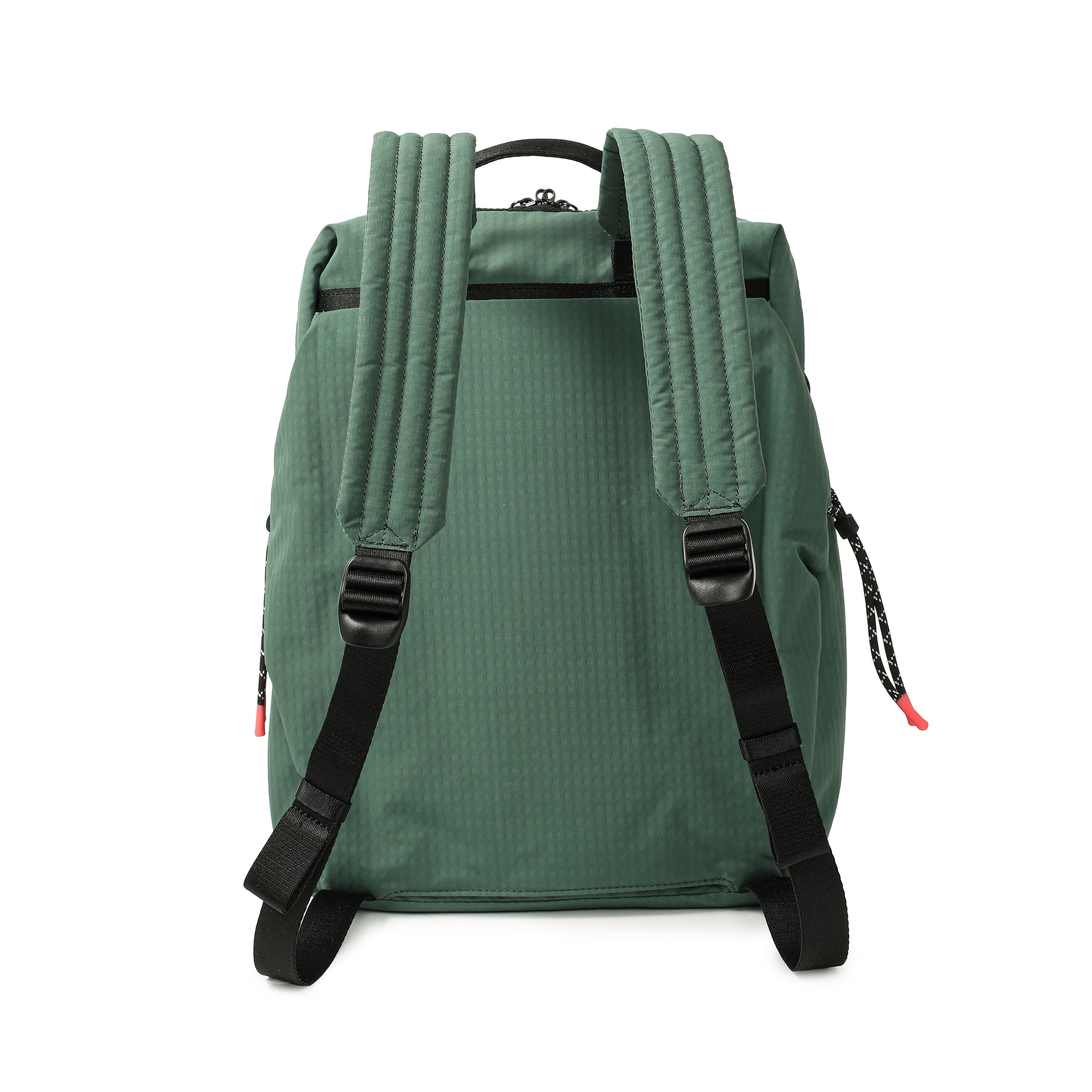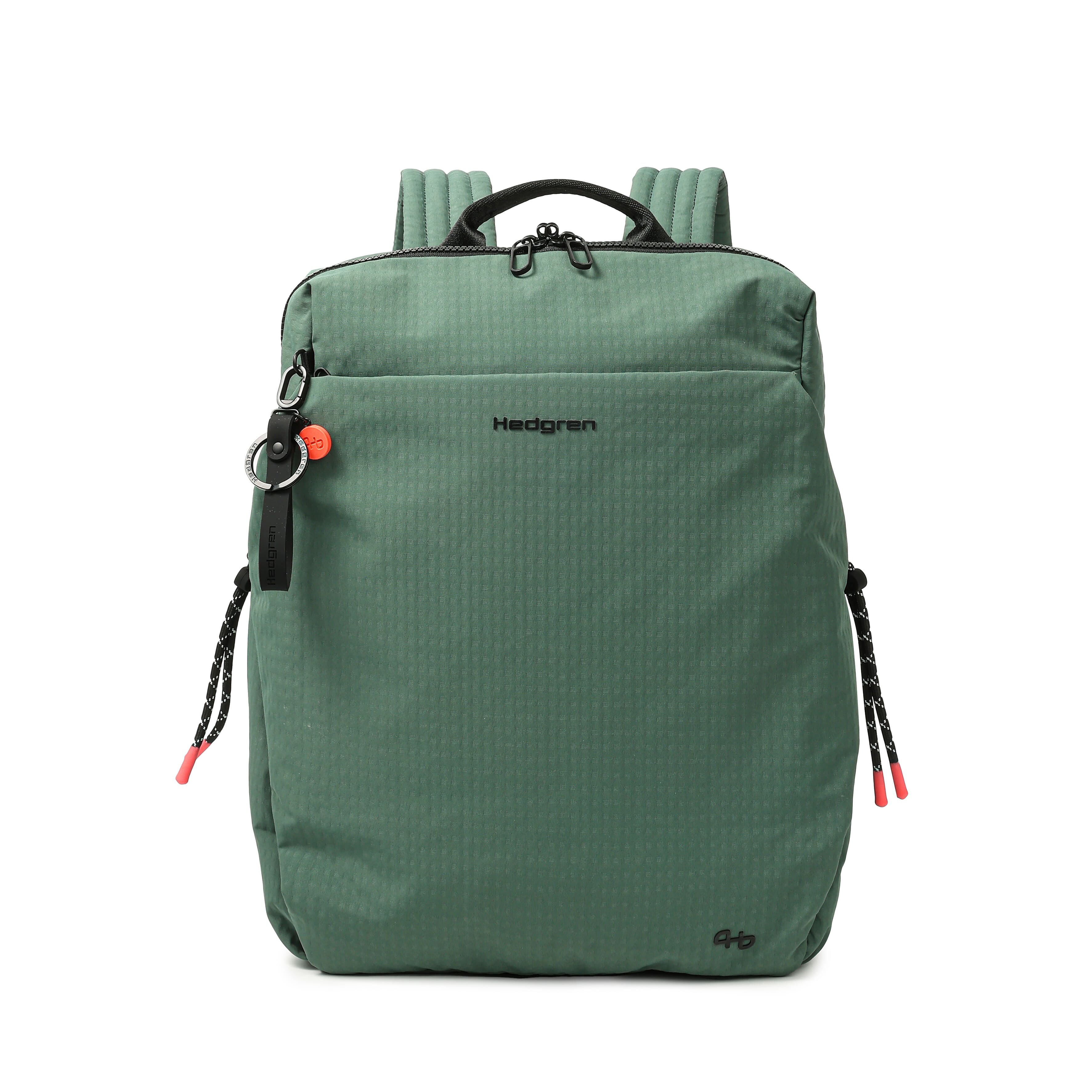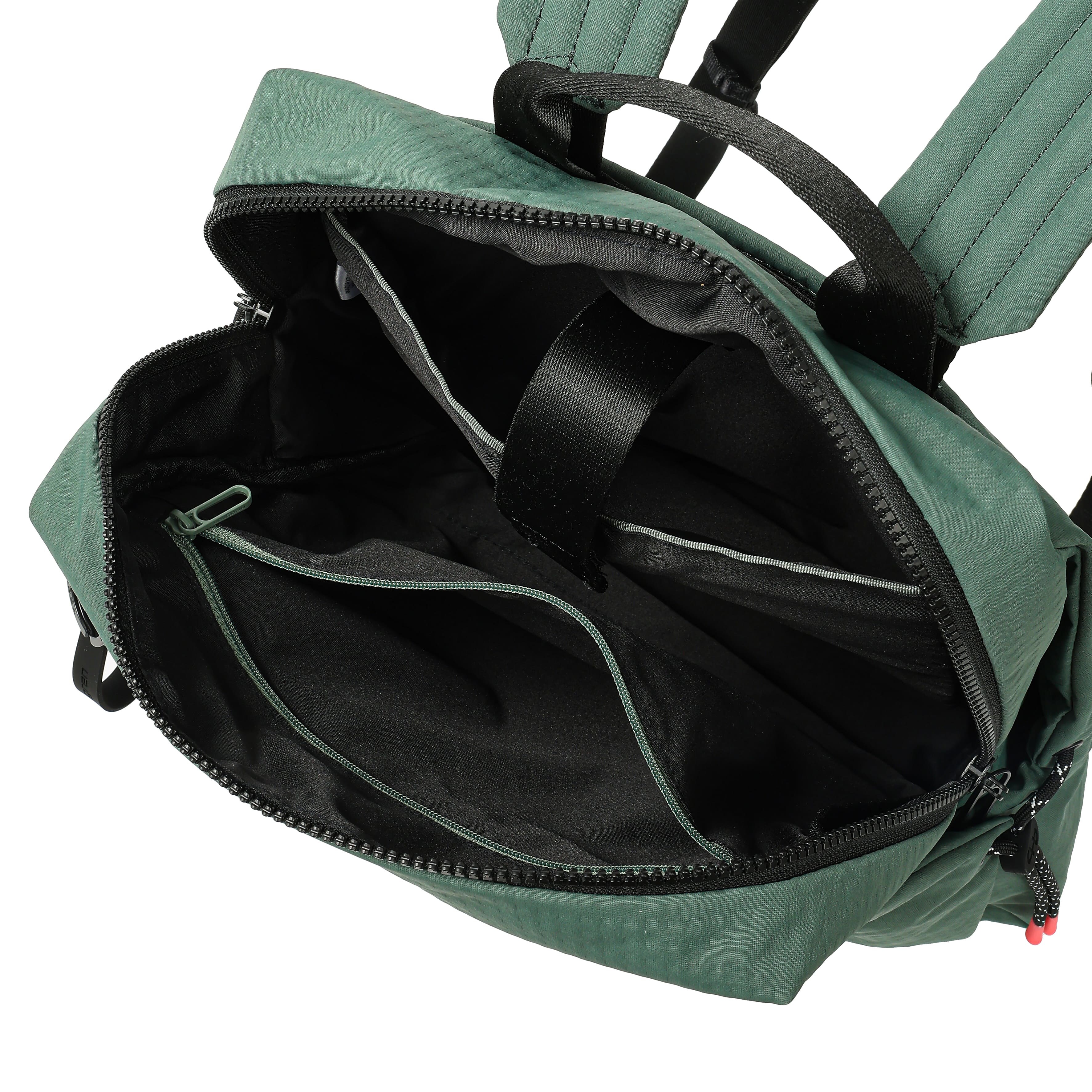 Универсальный рюкзак, изготовленный из переработанной ткани. Оснащен основным отделением на молнии с отделом для ноутбука 14", документов формата А4 и дополнительным карманом на молнии. Снаружи оснащен карманом, для предметов первой необходимости. На задней части изделия присутствует разумный рукав для крепления на телескопическую ручку чемодана, который при необходимости может превратиться карман, благодаря молнии. Также, по необходимости, рюкзак расширяется и имеет боковые карманы для бутылки/зонтики.