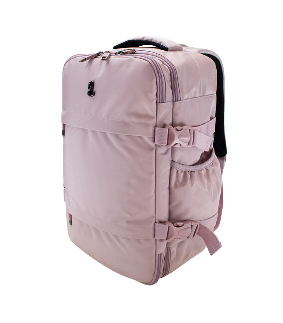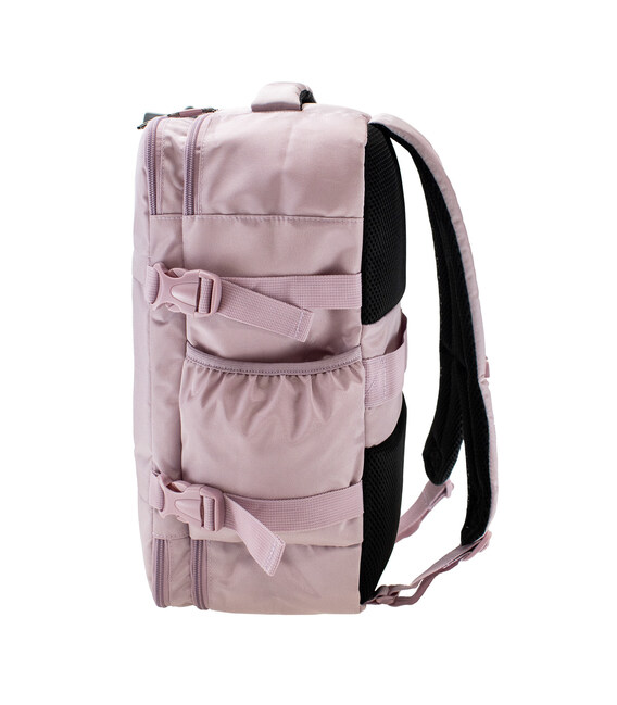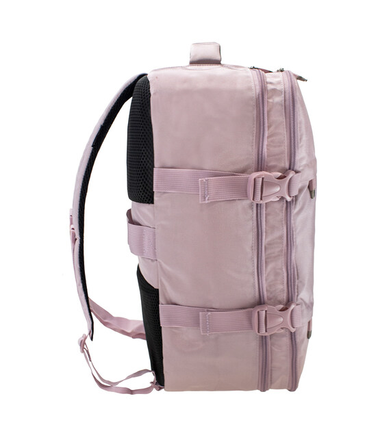 Для комфорта при ношении рюкзак имеет мягкую спинку и лямки из пористого дышащего материала. Сзади предусмотрена лента для крепления на телескопическую ручку чемодана, а также компрессионные ремни по бокам, которые помогают удерживать форму и уменьшать объем при транспортировке. Все отсеки оборудованы молниями с двумя пуллерами, которые открываются на 270°, обеспечивая удобный доступ к содержимому.