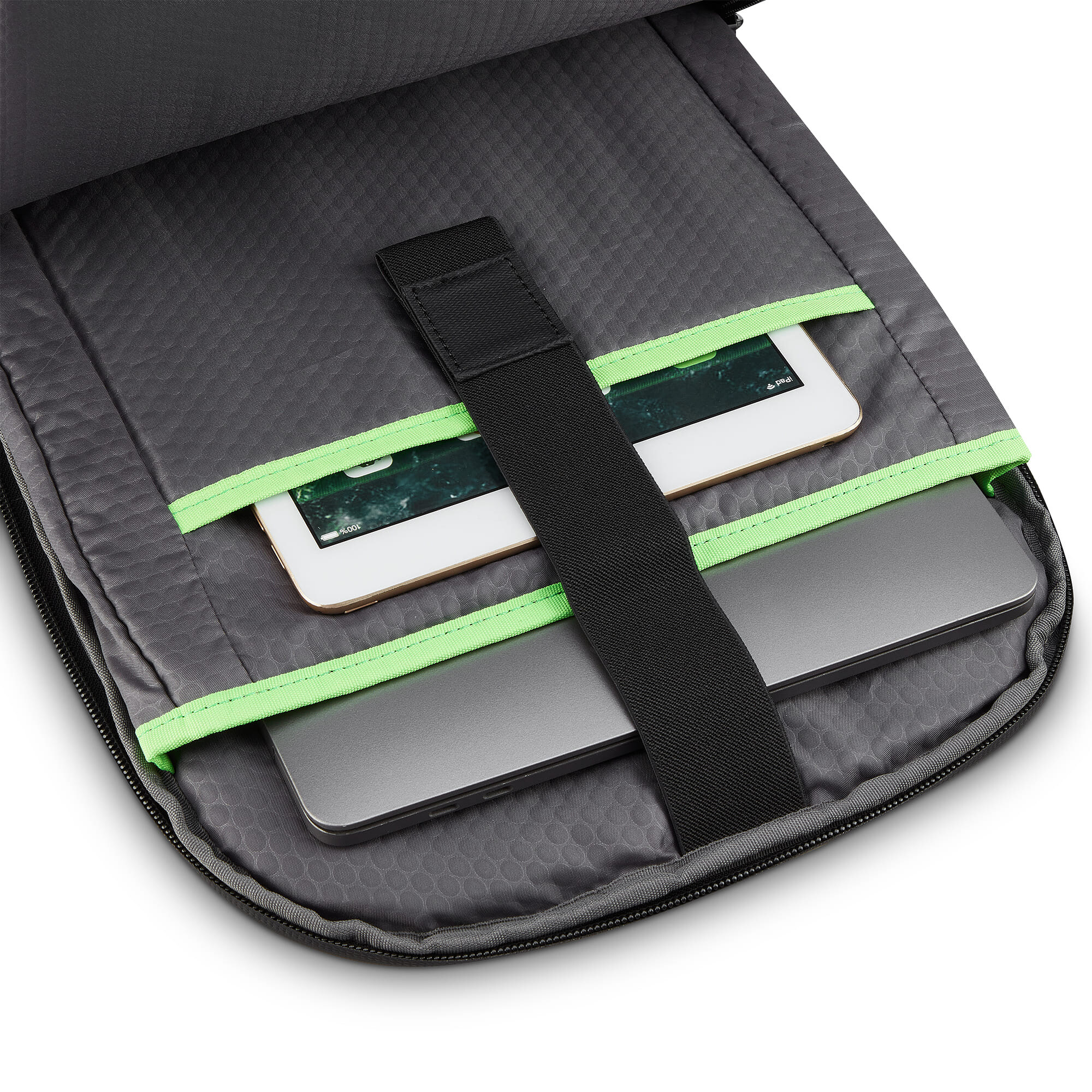 Рюкзак для путешествий – уникальная возможность соединить личные вещи с современными гаджетами. Идеальный вариант для командировок, в которых Вам понадобятся техника, предметы первой необходимости и место для одежды. Изделия коллекции изготовлены из волнистого полиэстера 900D с PU-покоем, которое защищает от дождя, брызг, влаги и быстро сохнет. Изделие оснащено двумя основными отделами, с карманом для мелких предметов с сетчатой перегородкой для организации и разделения одежды. Второй отдел предназначен для ноутбука 15.6", планшета и документов формата А4. Также, предусмотрен боковой карман для бутылки/зонта. Для удобства перемещения на задней части размещены мягкие плечевые ремни, планка для фиксации на телескопической системе чемодана, возможность застегнуть плечевые ремни фиксатором на грудь.