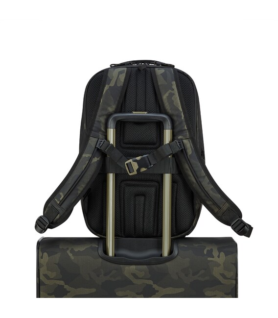 Рюкзак для путешествий – уникальная возможность соединить личные вещи с современными гаджетами. Идеальный вариант для командировок, в которых Вам понадобятся техника, предметы первой необходимости и место для одежды. Изделия коллекции изготовлены из волнистого полиэстера 900D с PU-покоем, которое защищает от дождя, брызг, влаги и быстро сохнет. Изделие оснащено двумя основными отделами, с карманом для мелких предметов с сетчатой перегородкой для организации и разделения одежды. Второй отдел предназначен для ноутбука 15.6", планшета и документов формата А4. Также, предусмотрен боковой карман для бутылки/зонта. Для удобства перемещения на задней части размещены мягкие плечевые ремни, планка для фиксации на телескопической системе чемодана, возможность застегнуть плечевые ремни фиксатором на грудь.
