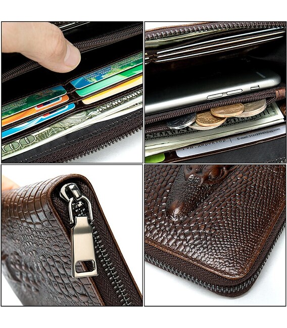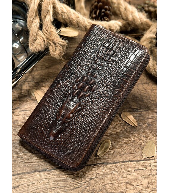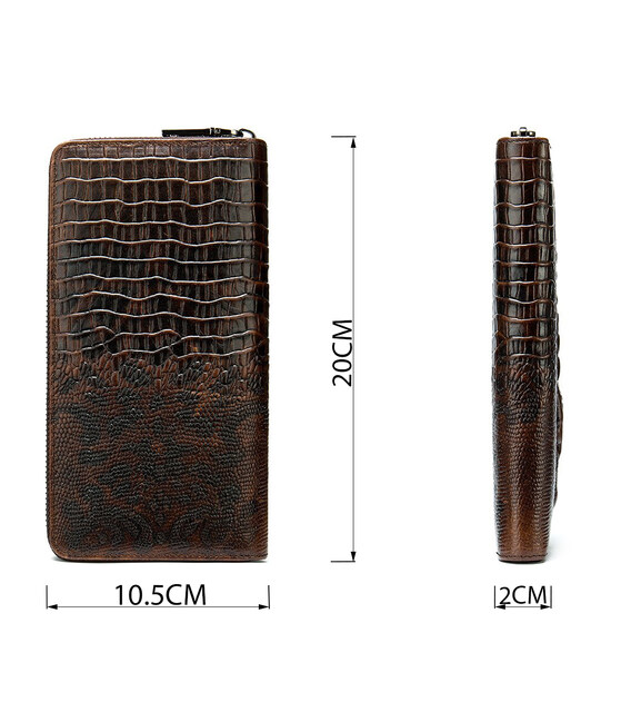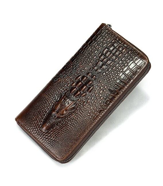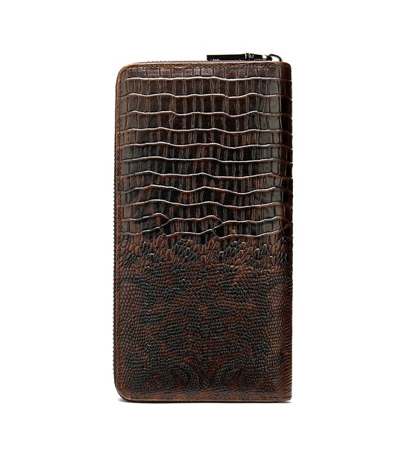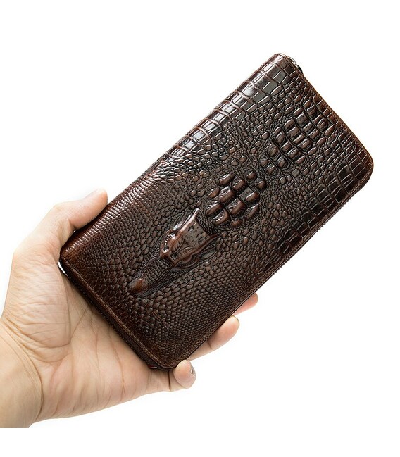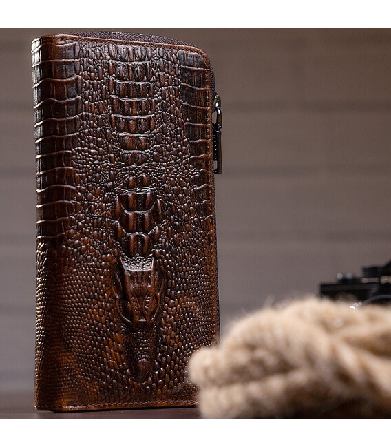 Кожаный мужской клатч с тиснением под экзотику и силуэтом каймана. Изделие очень удобно лежит в руке. Модель дополнена качественной фурнитурой. В клатч с легкостью помещаются купюры любого размера, а также ваш смартфон и паспорт. Клатч достаточно функциональный. Аксессуар очень стильно и солидно выглядит и идеально дополнит любой ваш образ. Такой аксессуар станет прекрасным подарком для любого мужчины.