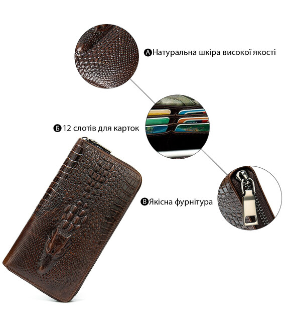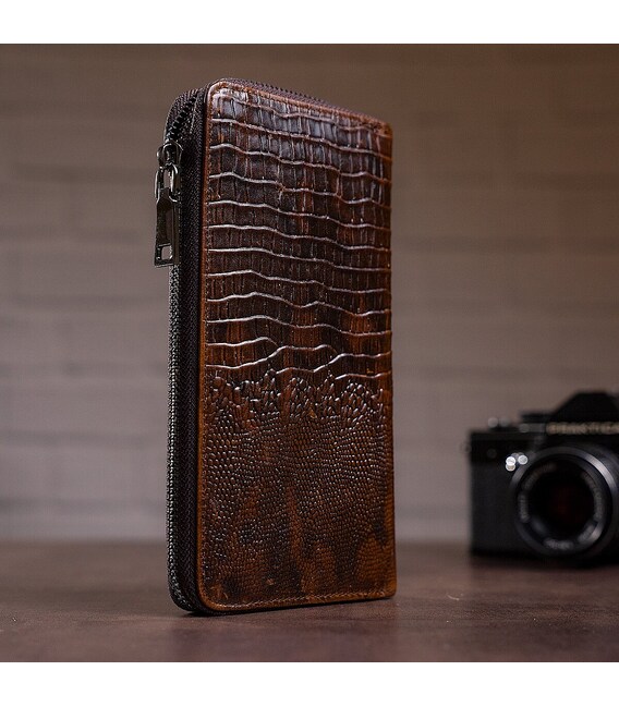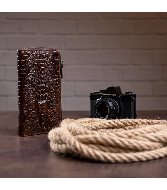 Описание Мужской клатч с силуэтом каймана 20235 Vintage Коричневый