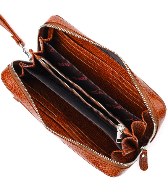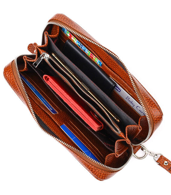 - внутри: карман-перегородка на молнии, шесть открытых карманов, 12 слотов для кредитных карт;