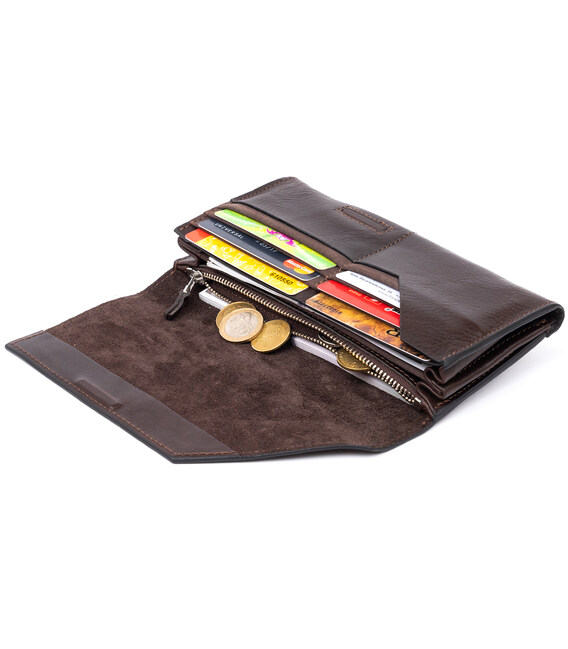 Описание Горизонтальный клатч глянцевый на магните GRANDE PELLE 11317 Шоколадный