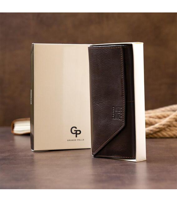 Горизонтальный клатч глянцевый на магните GRANDE PELLE 11317 Шоколадный