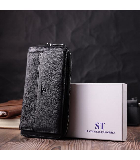 Функциональный кошелек-клатч унисекс из натуральной кожи ST Leather 22529 Черный
