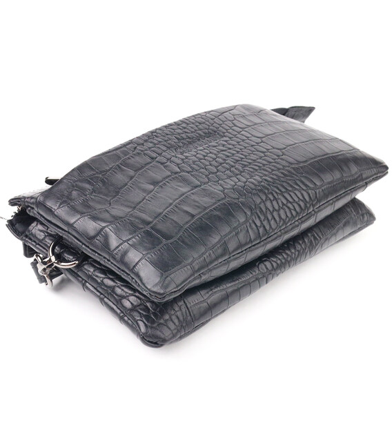 Описание Превосходный клатч для мужчин из натуральной фактурной кожи с тиснением под крокодила CANPELLINI 21556 Черный
