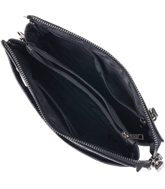 - снаружи на тыльной стороне мужского клатча расположена ручка для переноса в руке;