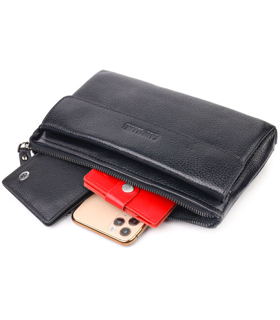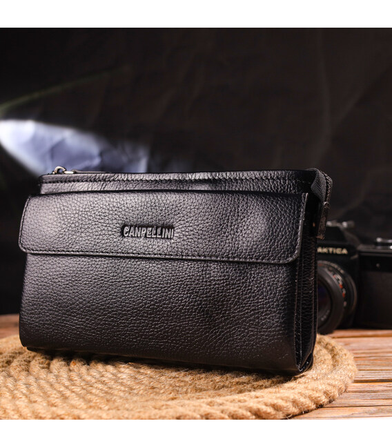 Описание Мужской стильный клатч из натуральной кожи CANPELLINI 21551 Черный