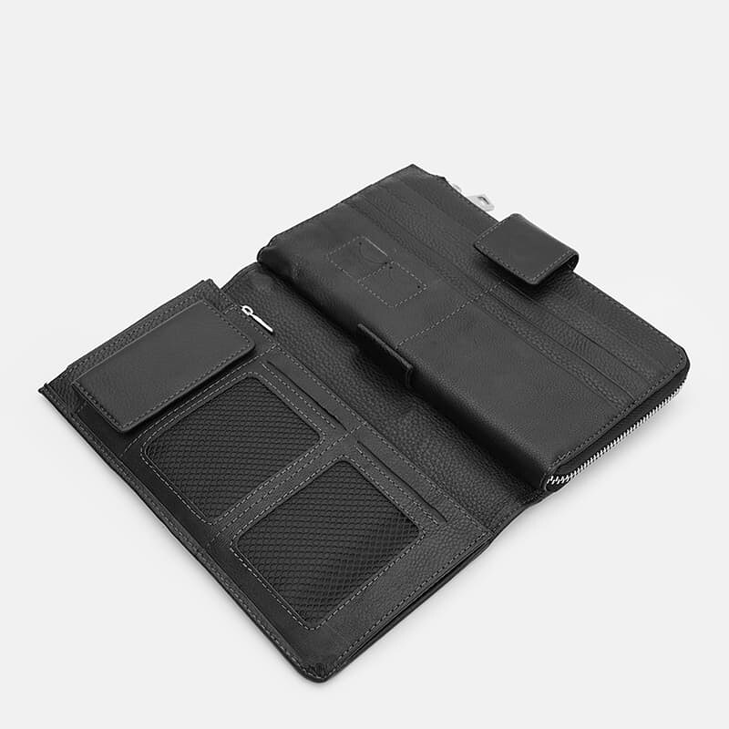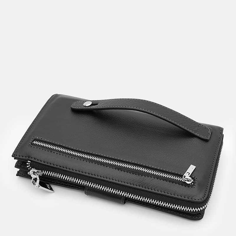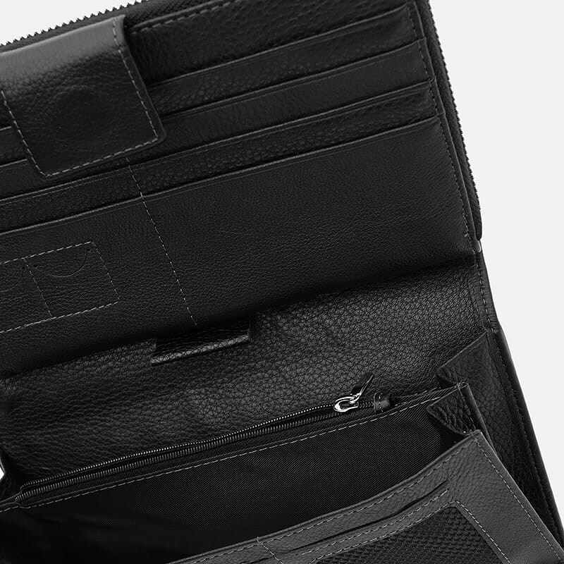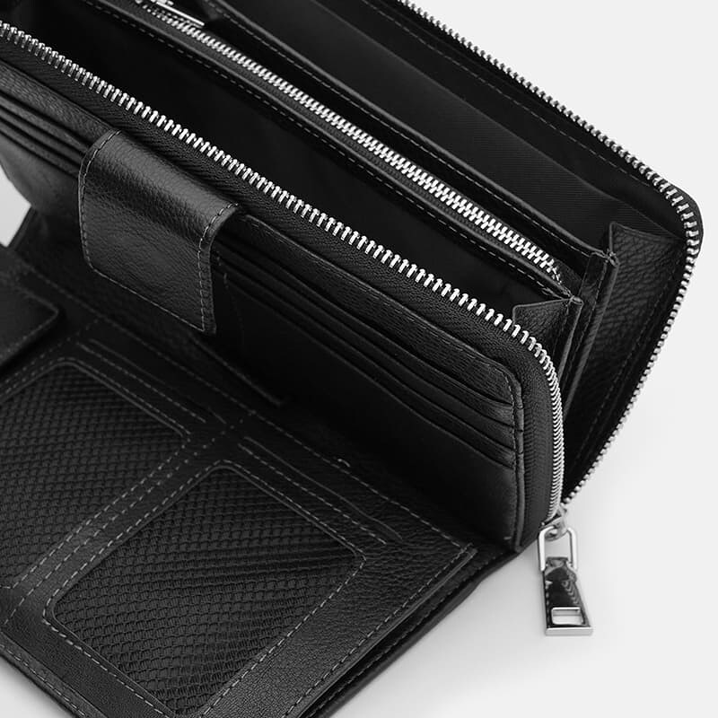 Мужской клатч из натуральной кожи - необходимый аксессуар каждому мужчине. Имеет 2 отделения, одно из которых закрывается на магнит. Внутри - 2 отделения под купюры, 1 карман на молнии, 1 карман на кнопке, 10 отделений под карты. Второе отделение закрывается на молнию, внутри 3 отделения под купюры, 1 карман на молнии, 3 отделения под карты. снаружи 1 карман на молнии. Подкладка текстиль. В комплекте кожаные съемный ремешок и ручка.