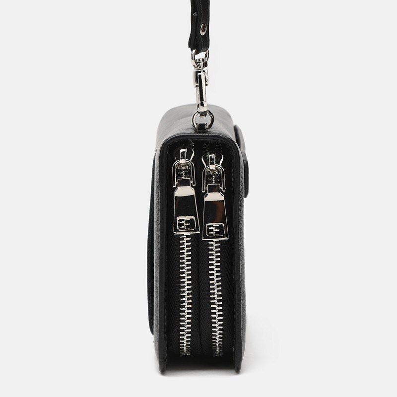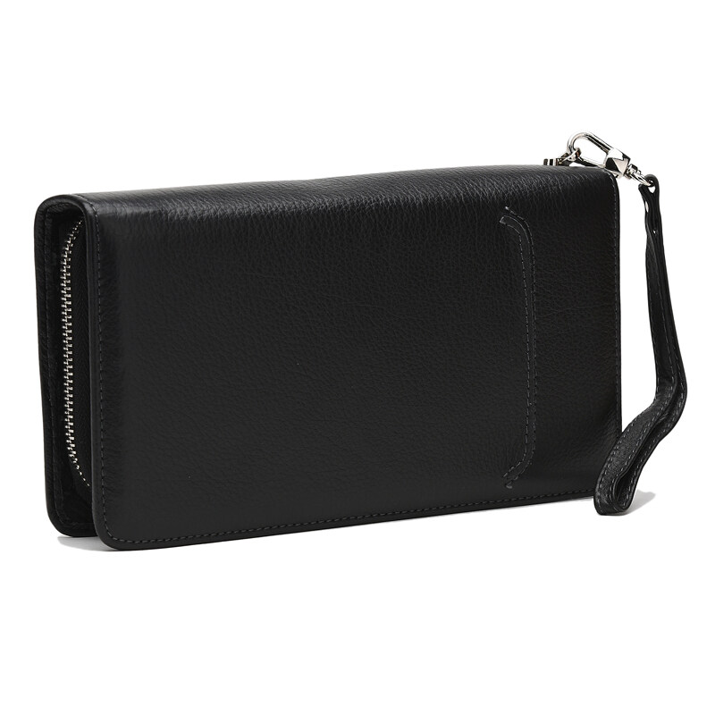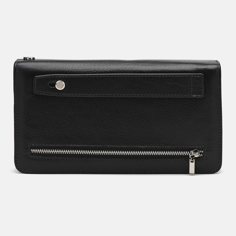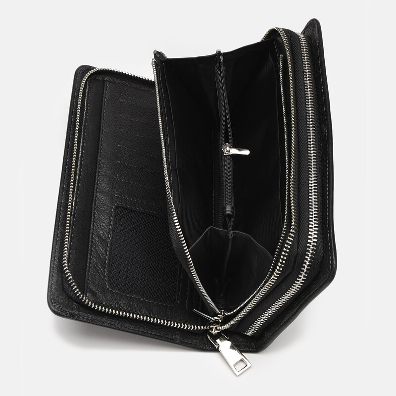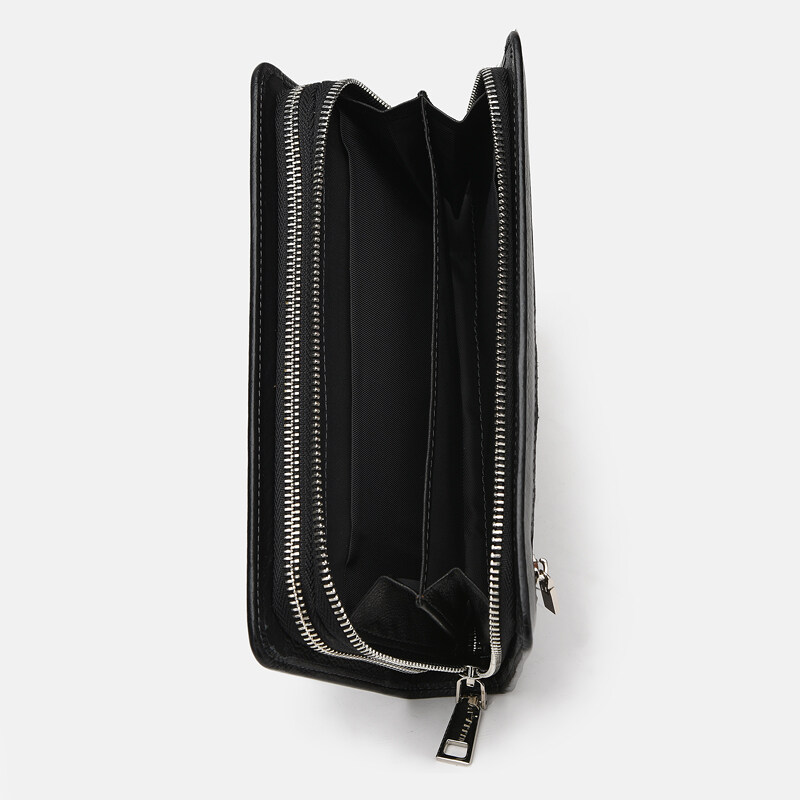 Клатч имеет 2 отделения на молниях. Снаружи 1 карман на молнии и карман под телефон. Внутри-17 карманов под карточки, 3 отделения под купюры,1 монетница и 3 дополнительных кармана под нужные мелочи. Подкладка- текстиль. В комплекте есть съемный ремешек на руку. Фурнитура-металл.