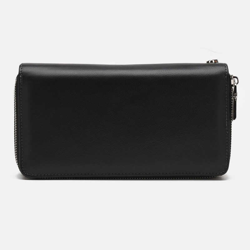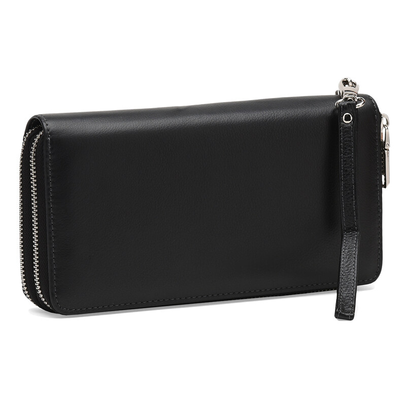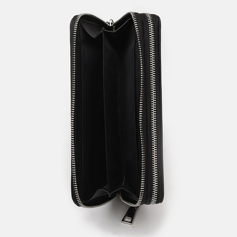 Клатч имеет 2 отделения на молниях. В одном из отделений- 4 кармана под купюры. Во втором--18 карманов под карточки, 2 отделения под купюры и 1 монетница. Подкладка- текстиль. В комплекте есть съемный ремешек на руку. Фурнитура-металл.
