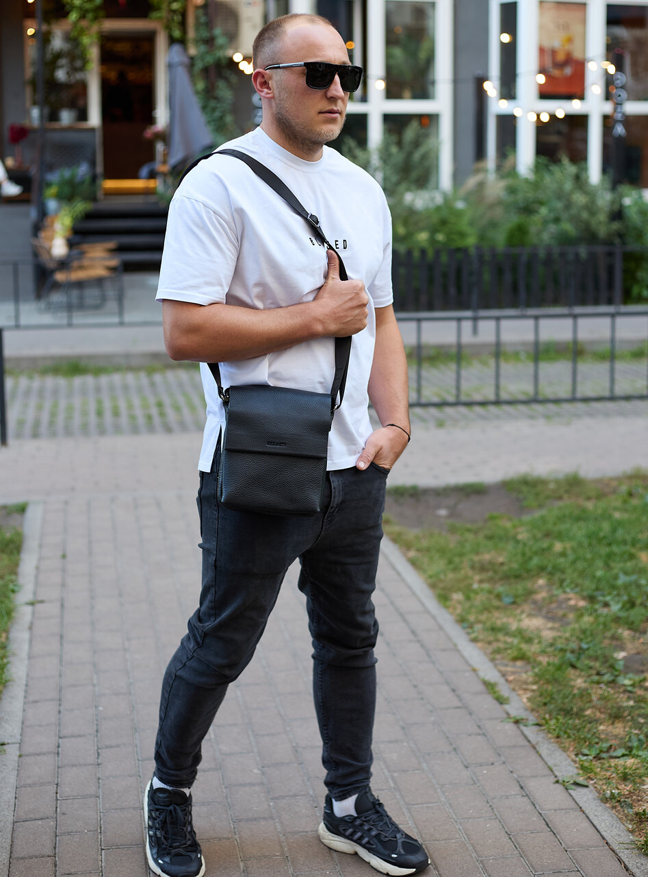 Стильный мессенджер из натуральной кожи для мужчины. Этот мессенджер отлично подойдет для повседневного ношения.