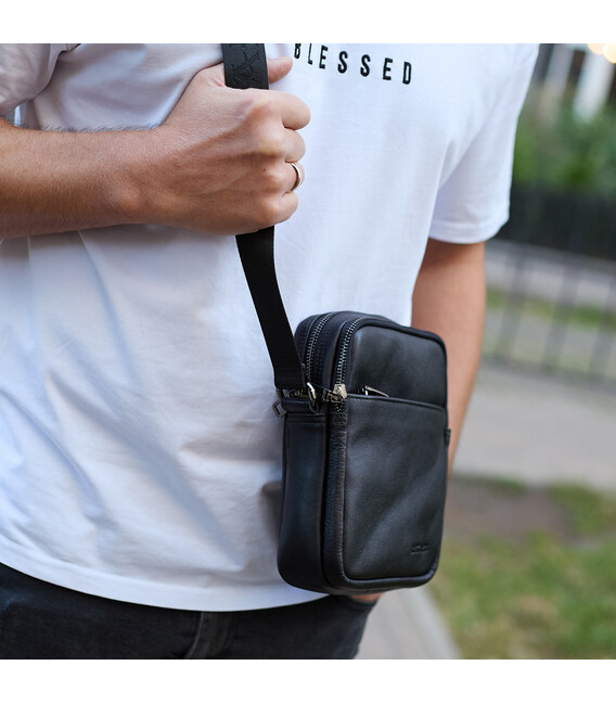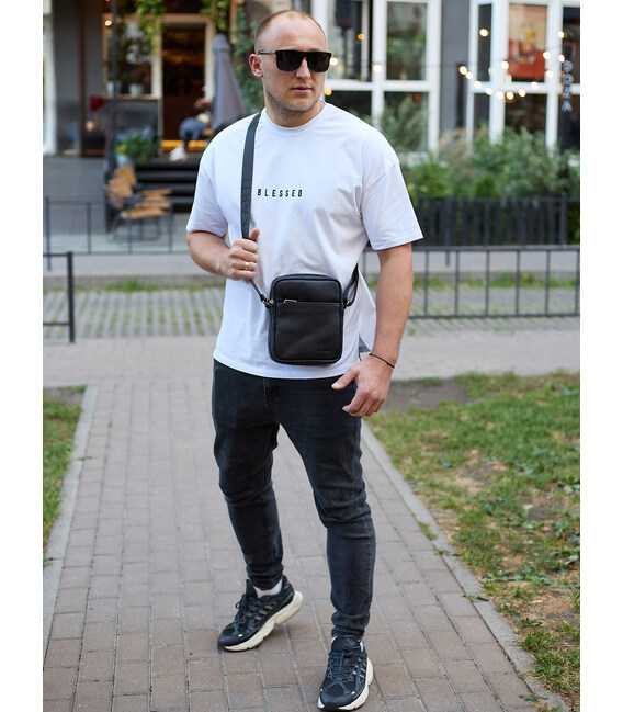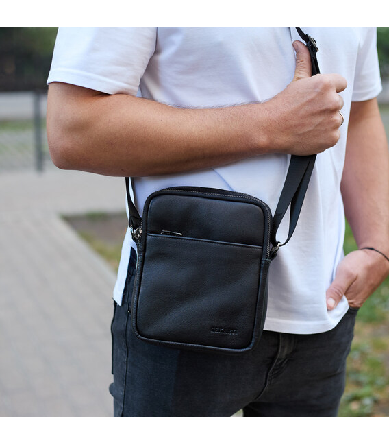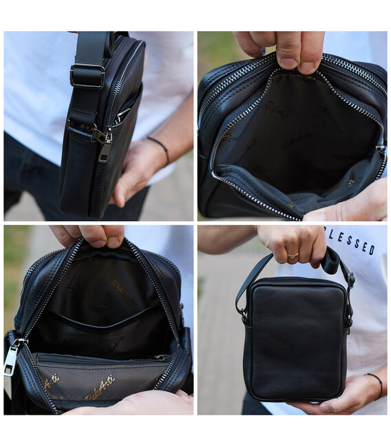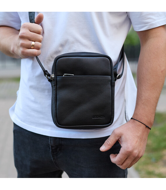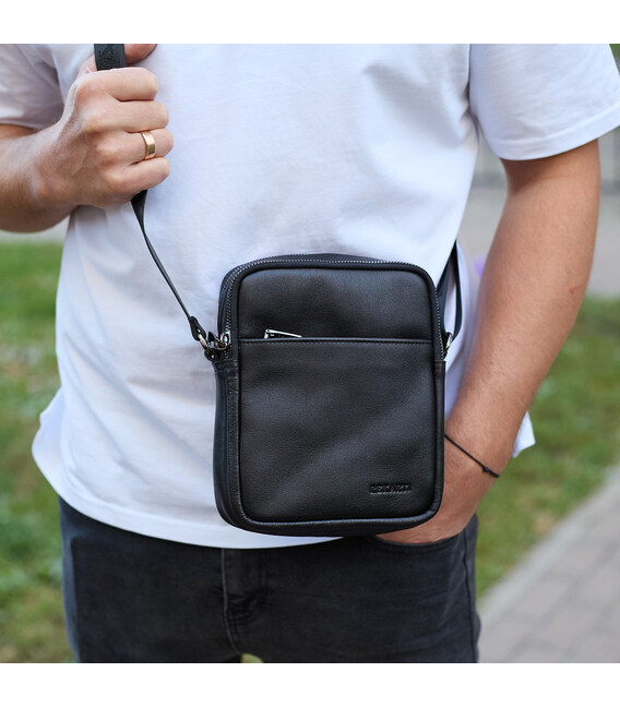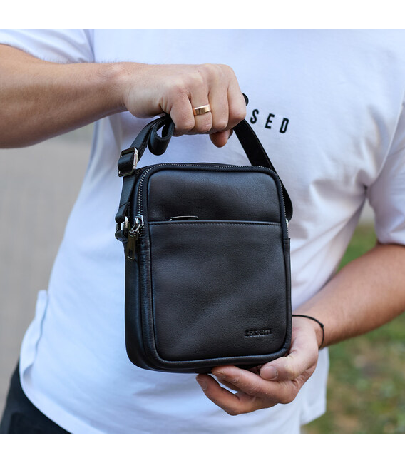 Описание Мужская сумка через плечо, гладка шкіра 20х16х6, мессенджер для города, барсетка для телефона и документов, черная
