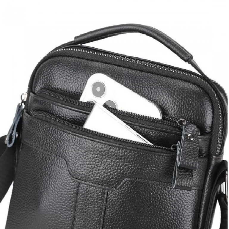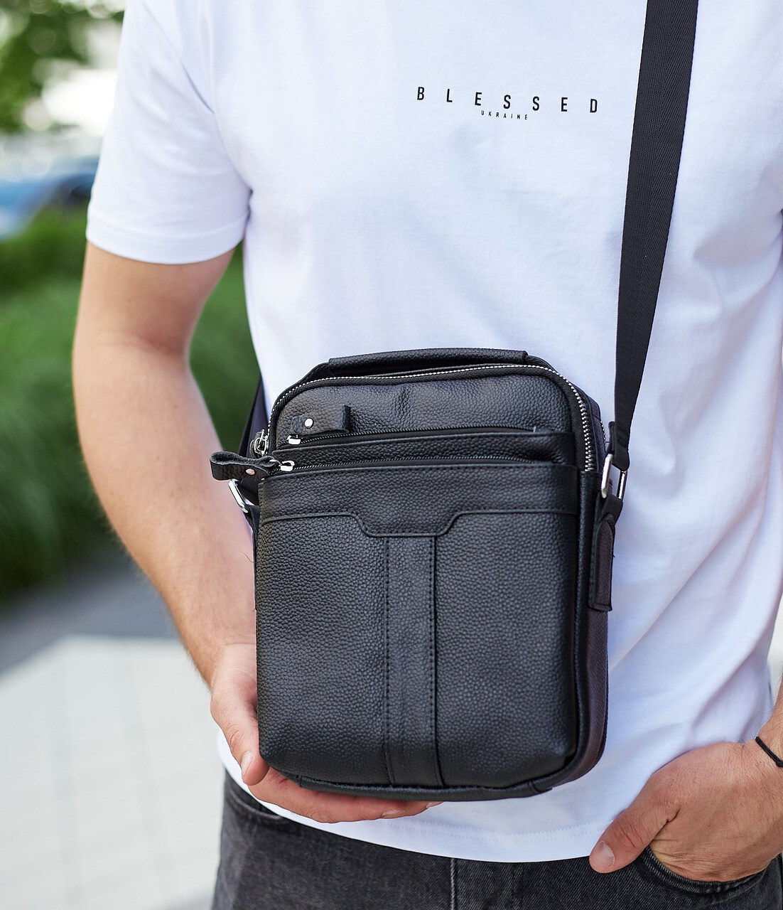 Мужская кожаная сумка-мессенджер через плечо Tiding Bag A25-3278A Черная