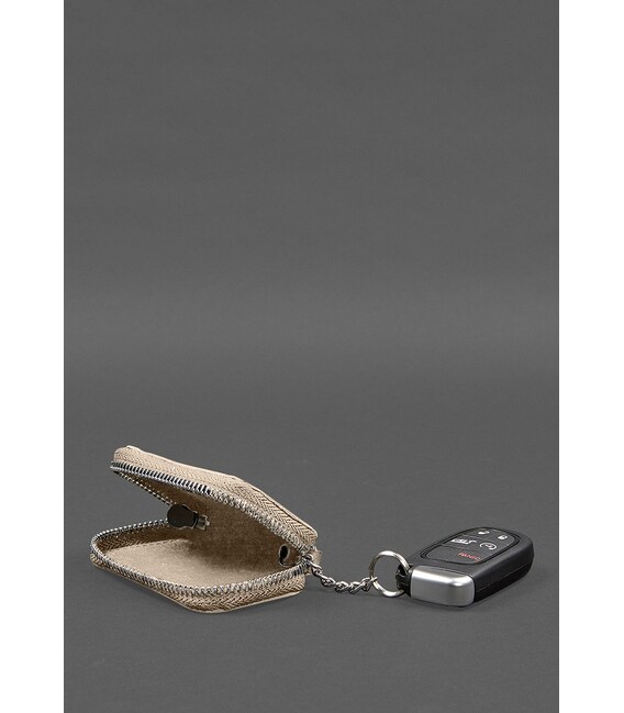 Кожаный чехол для автомобильного ключа светло-бежевый краст