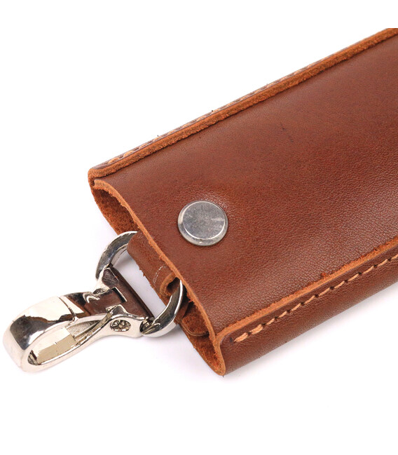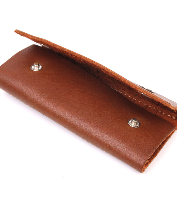 Надежная кожанная ключница на кнопках, с патриотическим тисненим на лицевой стороне. Изделие пошито из качесвенной гладкой кожи, с високими показателями износостойкости. В аксессуаре использована надежная фурнитура, цвета серебра. Изделия из кожи всегда считались отличным подарком, не зависимо от пола и возраста.