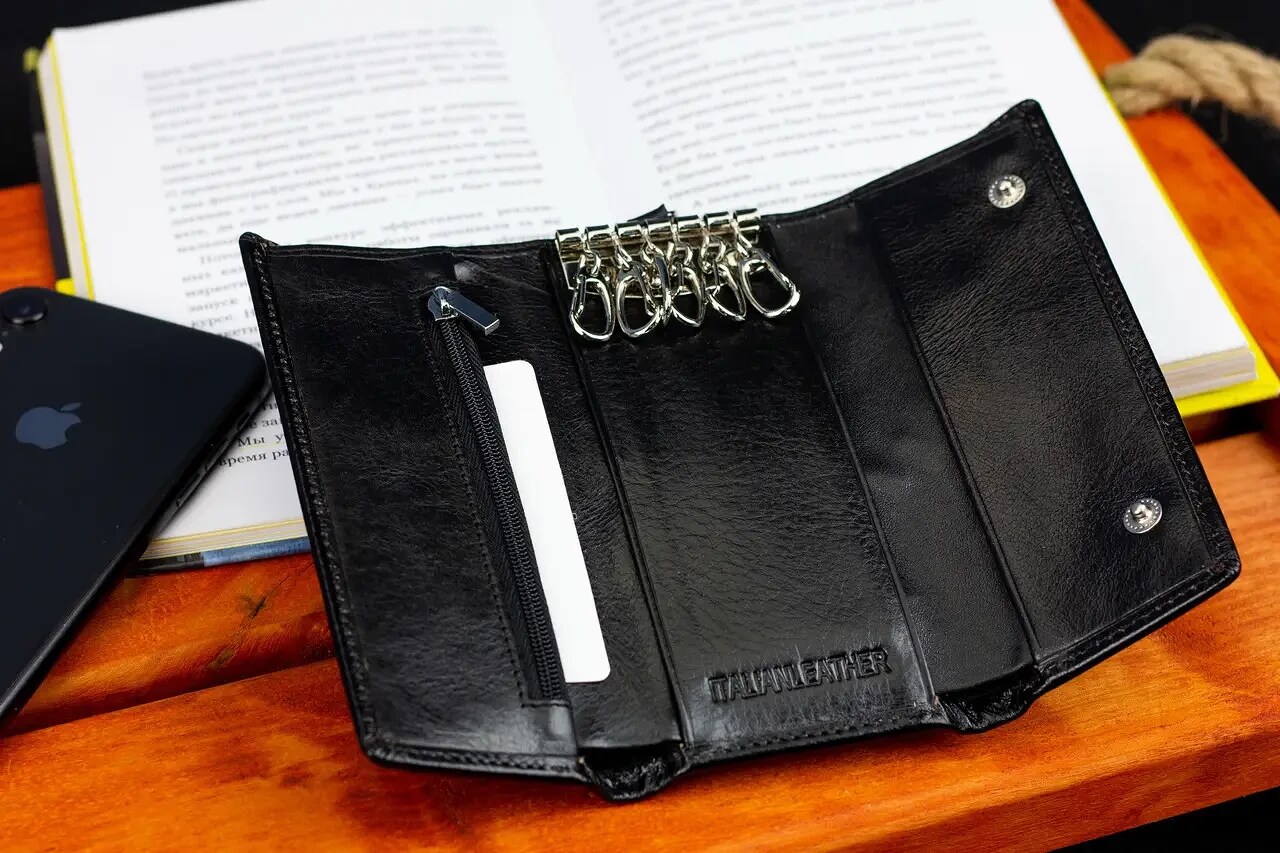 Ключница выполнена из натуральной кожи, поэтому очень практична в носке. Изделие успешно используется для 6 ключей, а также денег. В двух больших отделениях удобно носить деньги, более того, одно из них на молнии. Три прилегающих карманчика позволяют хранить разные мелочи. В согнутом состоянии изделие занимает мало места. С такой многофункциональной ключницей все, что нужно, всегда под рукой.