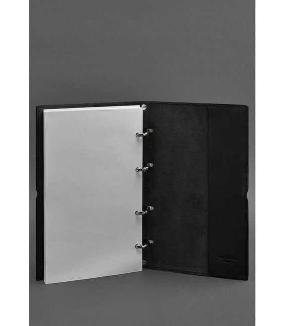 Кожаный блокнот А4 на кольцах (софт-бук) 9.0 в мягкой обложке черный краст