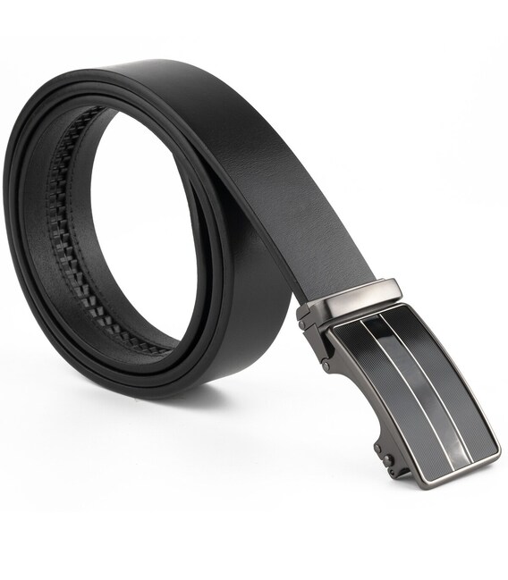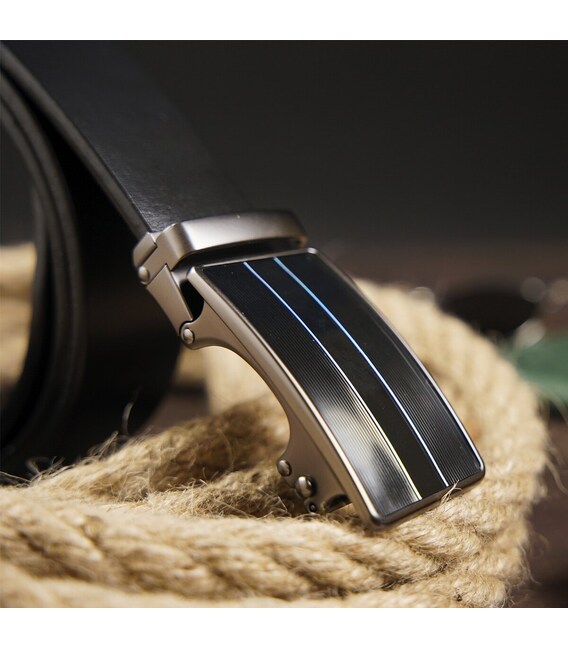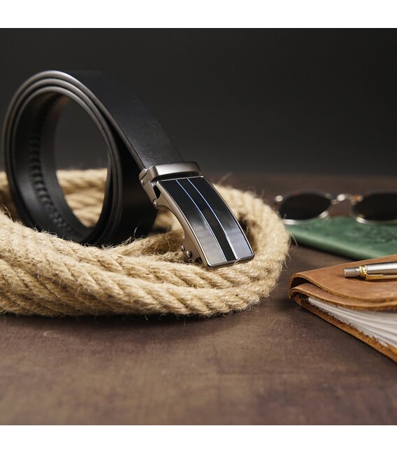 Описание Ремень мужской с автоматической пряжкой и полосками Vintage 20330 Черный