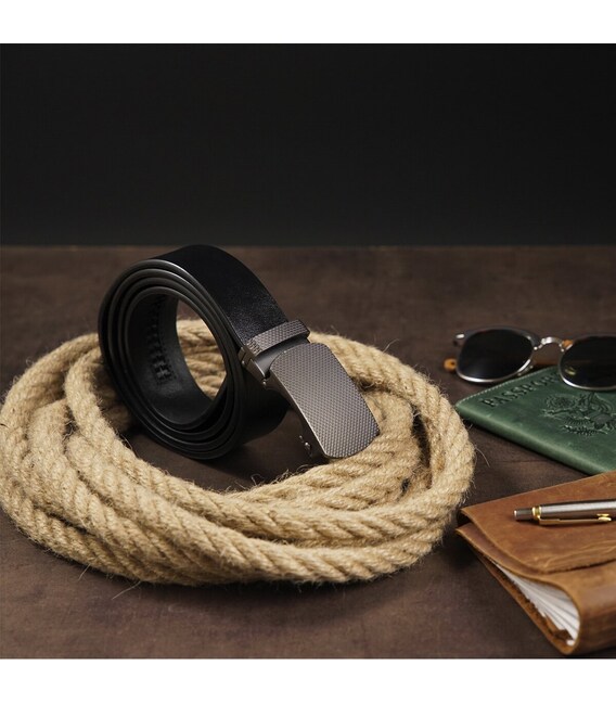 Описание Ремень мужской с зернистой пряжкой автомат Vintage 20272 Черный
