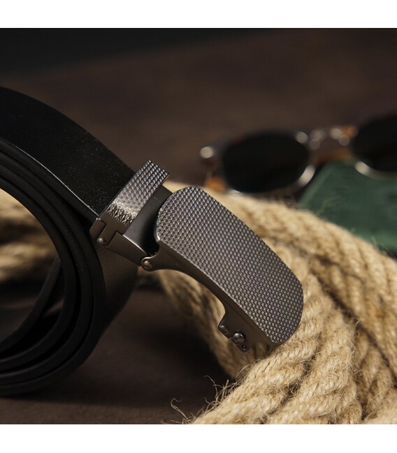 Ремень мужской с зернистой пряжкой автомат Vintage 20272 Черный