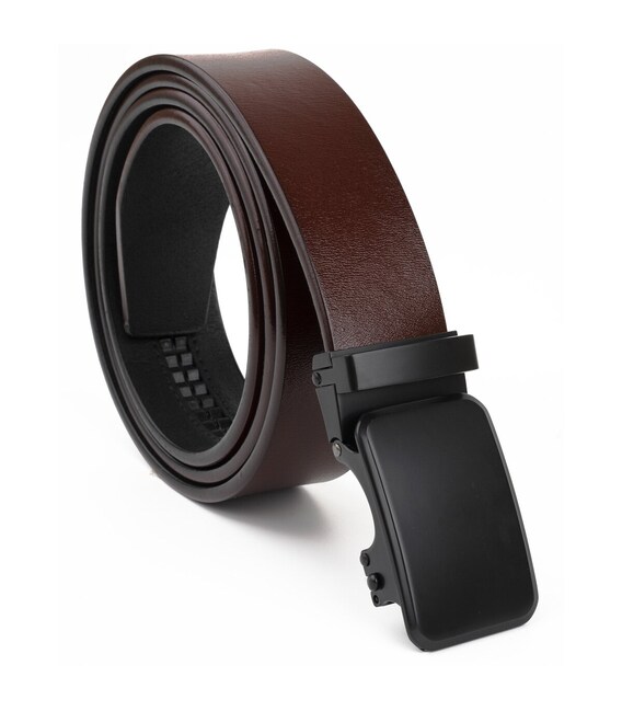 Описание Ремень мужской с черной пряжкой автомат Vintage 20271 Коричневый