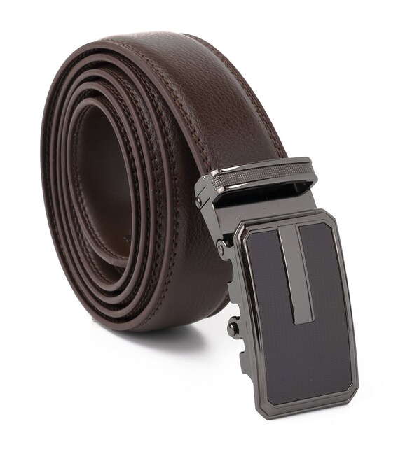 Описание Ремень мужской тонкий c пряжкой автомат и коричневой заливкой Vintage 20308 Коричневый