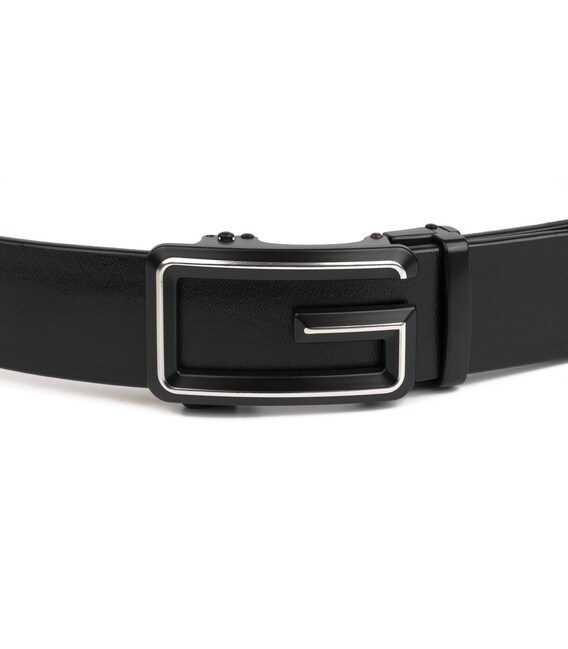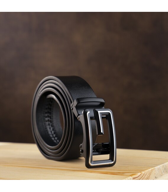 Качественный кожаный ремень черного цвета из натуральной кожи. Изделие прекрасно подойдет под любой ваш образ. Пряжка ремешка напоминает букву G в сочетании с затемненным металлом. Автоматическая пряжка очень проста в эксплуатации. Ремень не привязывает вас к определенной обуви. По качеству аксессуар ничем не уступает дорогим брендам, но при этом стоит значительно дешевле. Уверены, что ремень покорит любого мужчину. Рекомендуем вам данную модель, если вы находитесь в поиске качественного повседневного ремня.