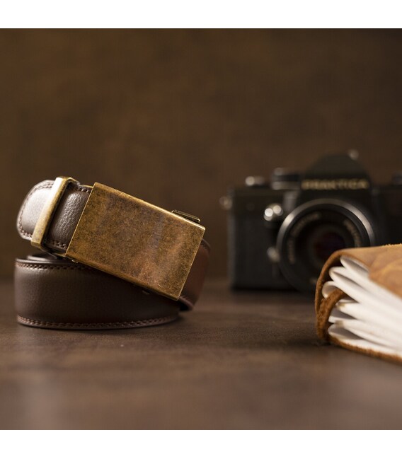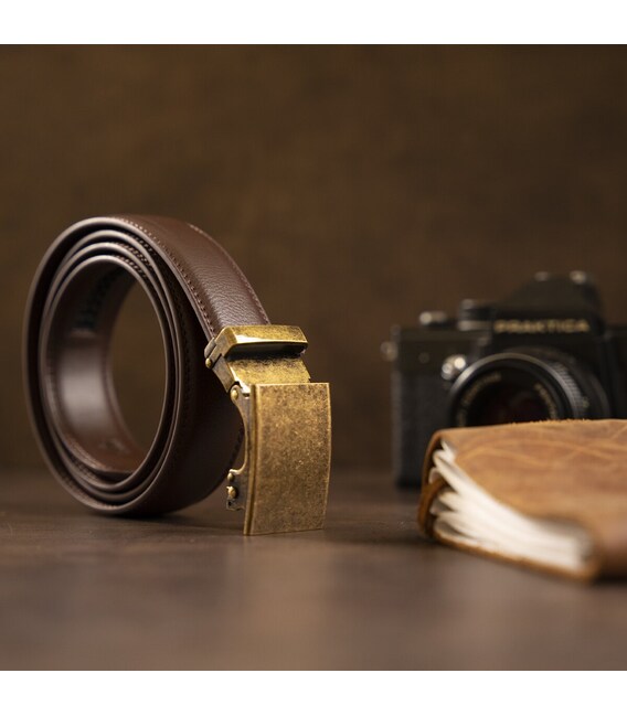 Описание Ремень из натуральной кожи с автоматической пряжкой латунь Vintage 20309 Коричневый