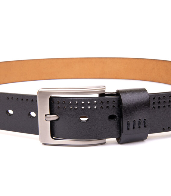 Стильный ремень в плотной коже. Дизайн ремешка дополнен мелкими дырками по всей длине. Аксессуар с классической массивной пряжкой из плотного металла. Изделие прекрасно подчеркнет ваш образ. Подойдет под любой стиль. Качественный ремень - залог правильно собранного образа и элемент статуса мужчины. Производство - фабричный Китай высокого качества.