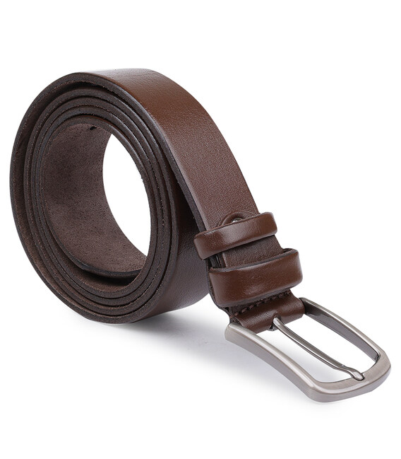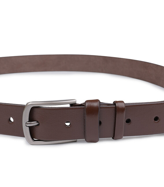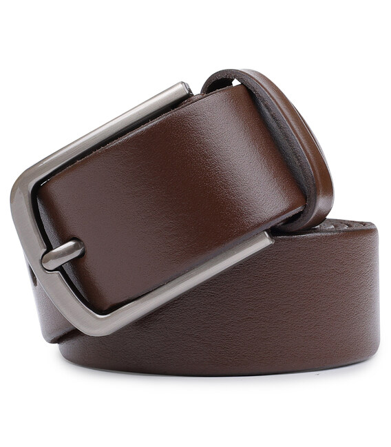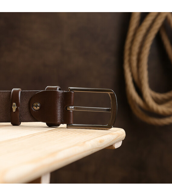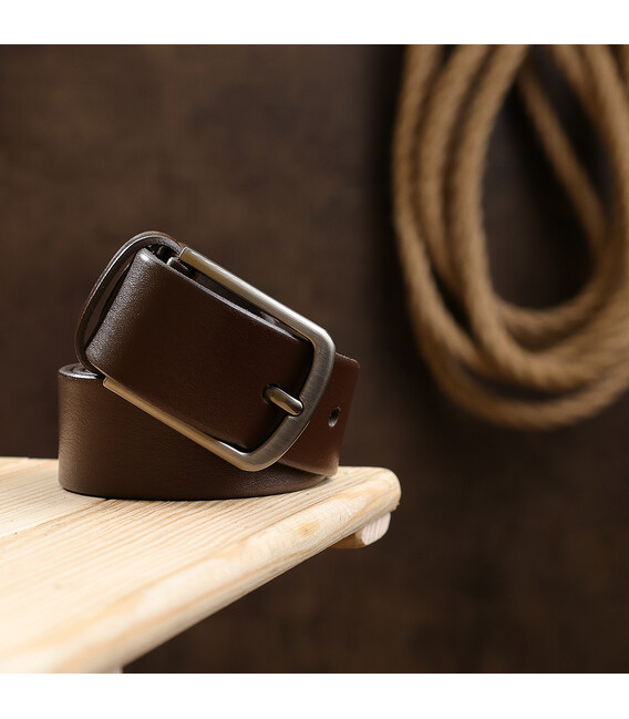 Добротный мужской ремень средней длины в универсальном коричневом цвете. Имеет гладкую и приятную на ощупь фактуру и классическую пряжку в строгом неброском дизайне. Изготовлен ремень из натуральной высокопрочной кожи и имеет высокие показатели устойчивости к износу.