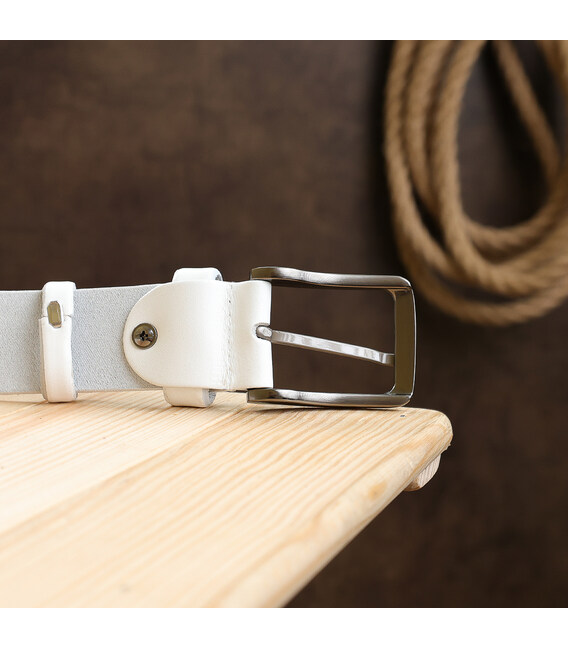Отличный классический ремень в универсальном белом цвете, поэтому подойдет и мужчинам, и женщинами. Материал изготовления – высокопрочная натуральная кожа, которая устойчива к различным повреждениям и износу. Такой ремень несомненно, станет хорошим и практичным подарком.