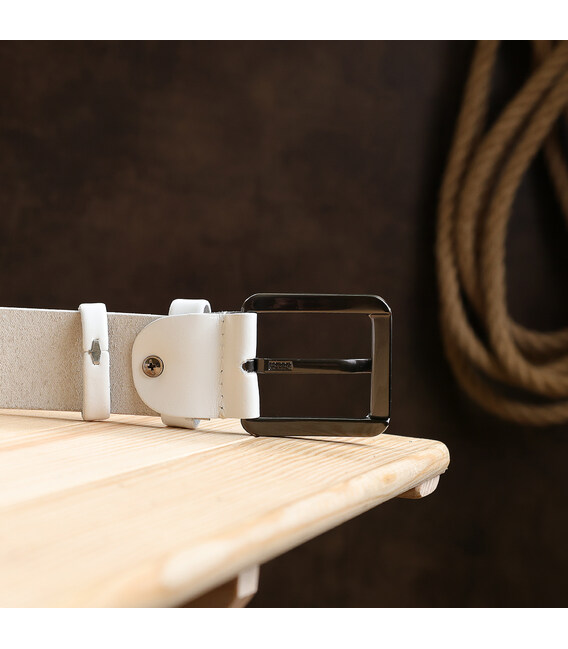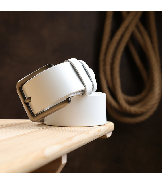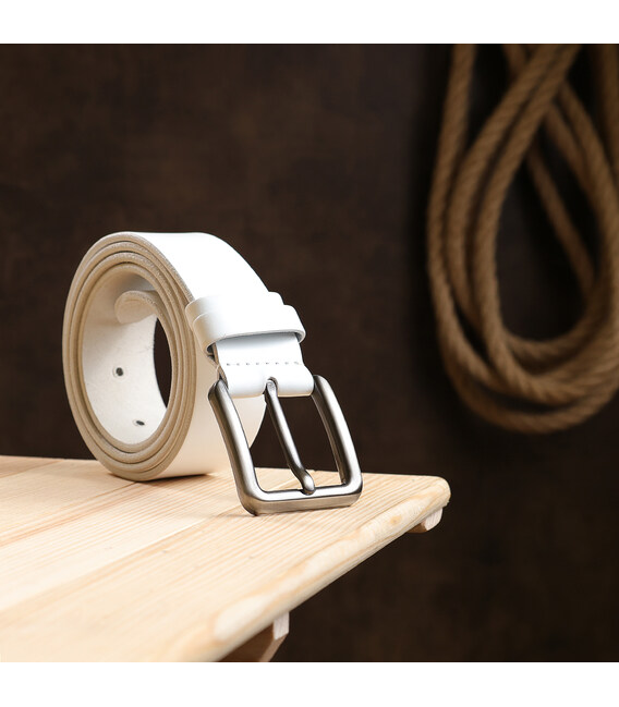 Хороший мужской ремень отменного качества от украинского производителя. Имеет красивый белый цвет, гладкую фактуру и классическую пряжку с простым и надежным механизмом. Выполнено изделие из натуральной высококлассной кожи. Такой ремень можно смело преподносить в качестве отличного подарка.