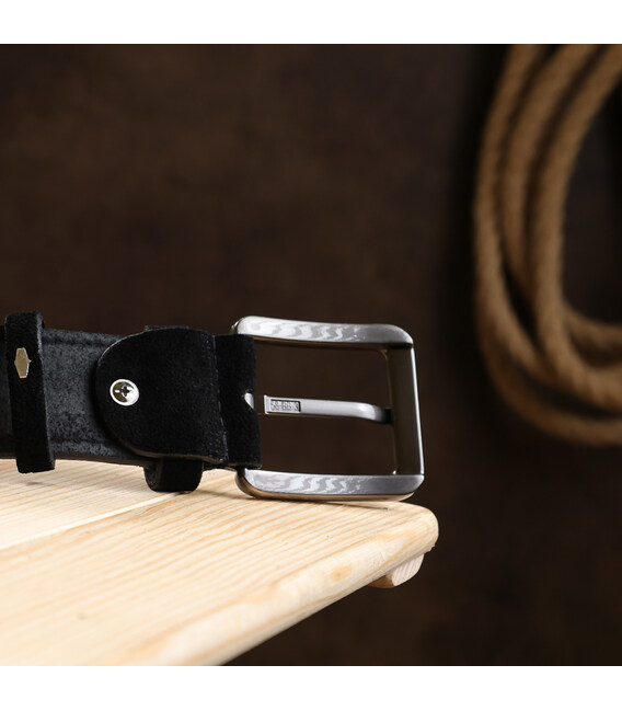 Красивый замшевый ремень в универсальном черном цвете для мужчин. Отлично подойдет под любой стиль одежды и обуви. Выполнен из натуральной высококачественной кожи с прекрасными эксплуатационными показателями. Фактура изделия – мягкая и приятная на ощупь, пряжка – классическая.
