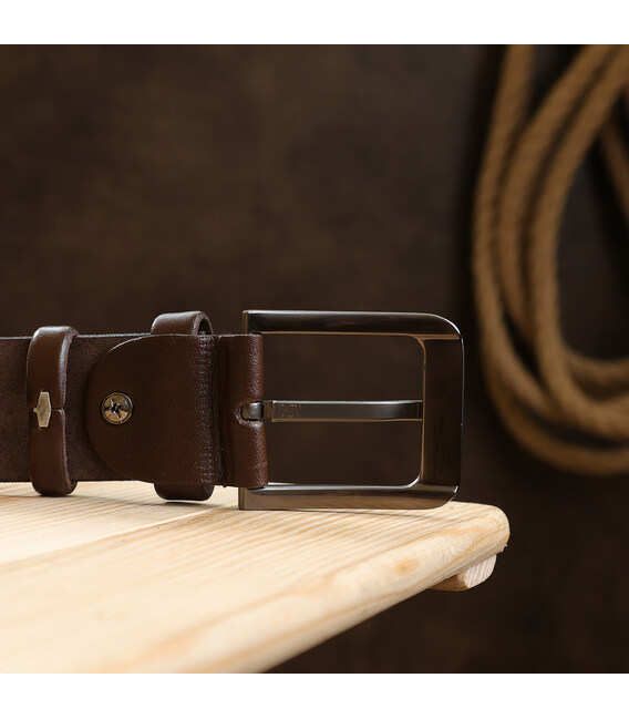 Замечательный мужской ремень в красивом насыщенном коричневом цвете. Материал изготовления – натуральная кожа высшего класса. Такой аксессур прослужит Вам очень долго, благодаря отличным характеристикам качества исполнения. Фактура ремня в данной модели – гладкая.