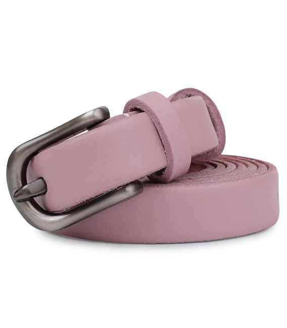 Стильный тонкий женский ремень в нежном розовом цвете с классической пряжкой. Имеет приятную гладкую фактуру. Изготовлен из натуральной кожи высшего класса с высокой устойчивостью к потертостям и износу. Данная модель станет изюминкой образа женщины любого возраста и статуса.
