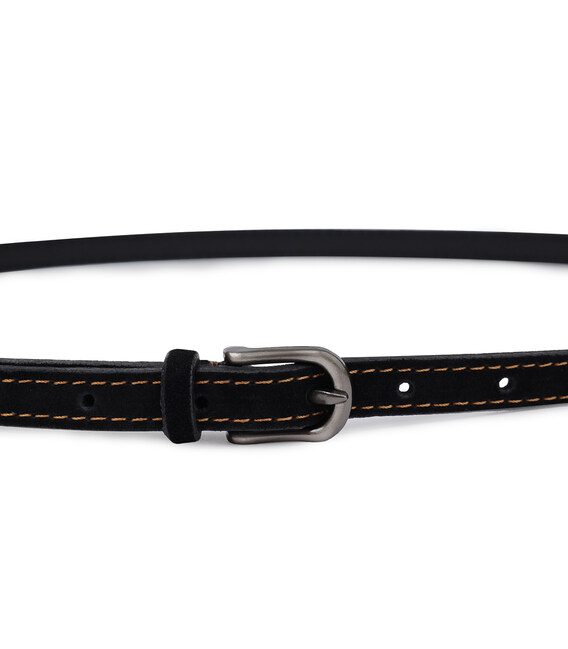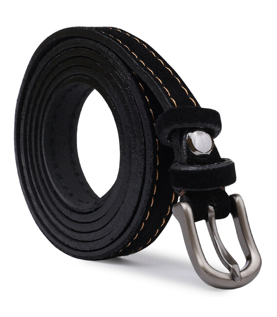 Превосходный женский ремень из замши в универсальном черном цвете, что позволяет носить его под любой стиль одежды и обуви. Материал изготовления – натуральная высококлассная кожа с высокими показателями прочности. Пряжка небольшого размера и имеет лаконичный простой дизайн, фактура изделия очень приятная на ощупь
