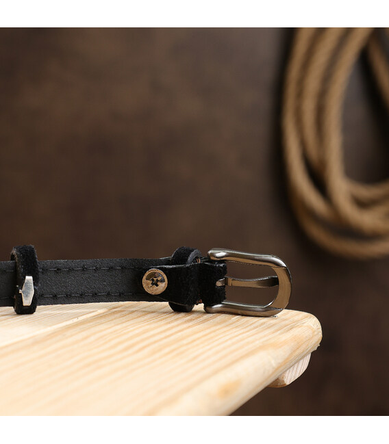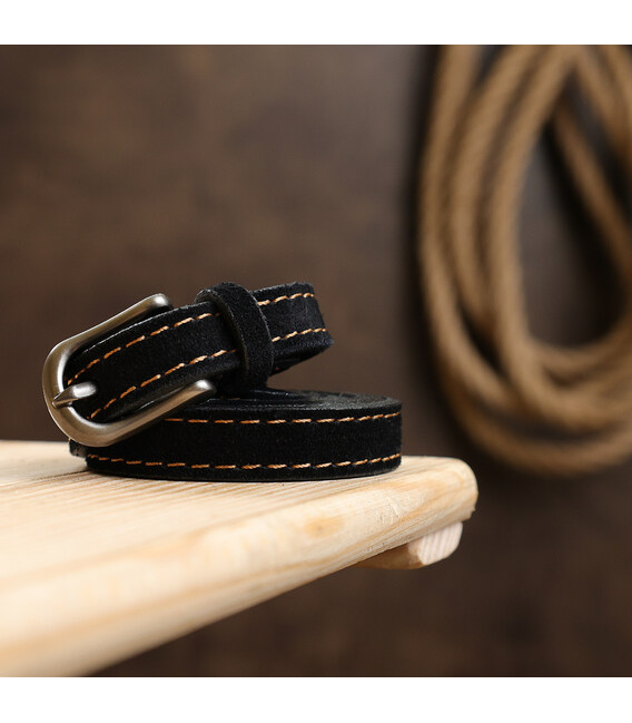 Описание Стильный замшевый ремень для женщин Vintage 20772 Черный