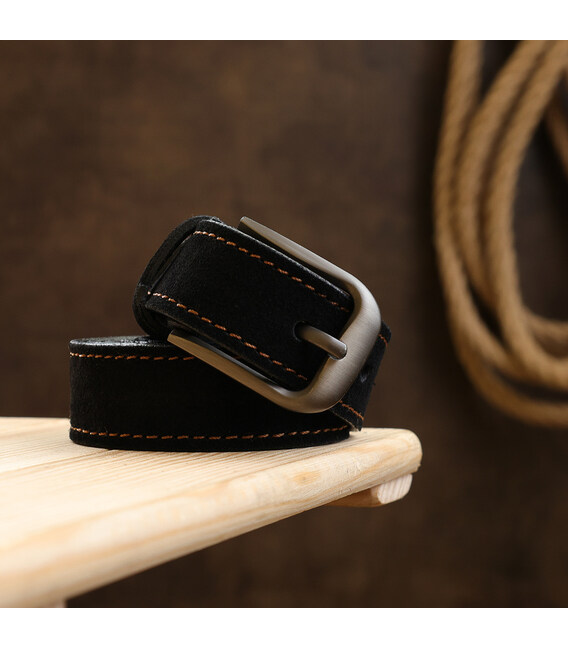 Описание Замшевый ремень унисекс Vintage 20781 Черный