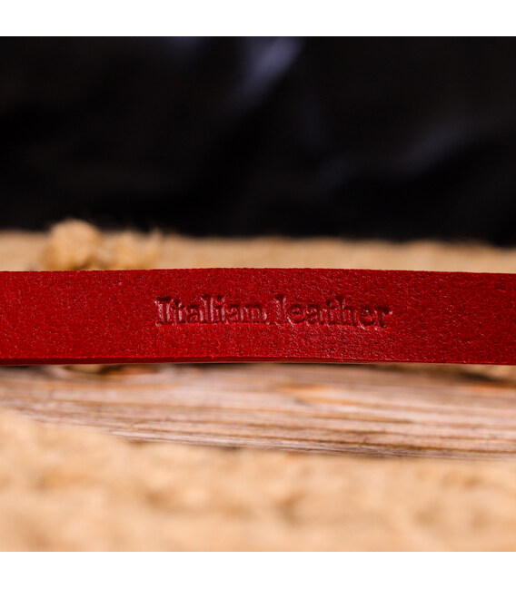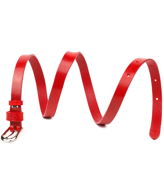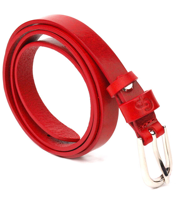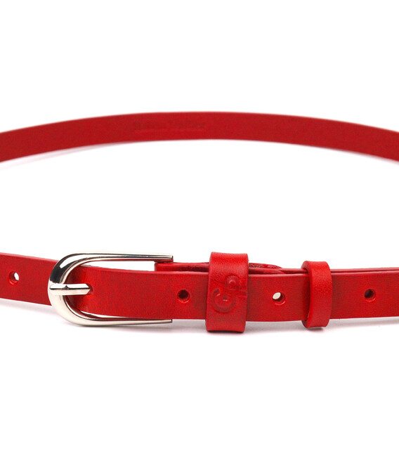Узкий женский ремень из высококачественной итальянской кожи, в красивом красном цвете, немного с глянцевым блеском. Аксессуар будет отлично сочетатся, как с брюками, так и с платьем, блузкой или туникой. Пряжка выполнена из качественной фурнитуры, с закругленными краями, очень аккуратная и стильная. Цвет пряжки: серебро. Тиснение логотипа бренда добавляет изделию стиля, а также служит залогом качества и оригинальности продукции. Кожаный ремень будет всегда актуальным подарком для себя, подруги или коллеги.