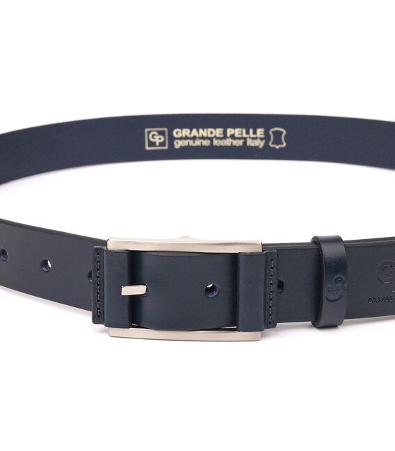 Описание Элегантный мужской ремень под брюки из натуральной кожи Grande Pelle 21452 Синий