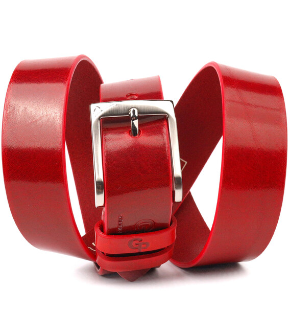 Яркий женский ремень из высококачественной итальянской кожи, в красивом красном цвете, немного с глянцевым блеском. Аксессуар будет отлично сочетатся, как с брюками, так и с джинсами. Пряжка выполнена из качественной фурнитуры, с острыми краями, очень аккуратная и стильная. Цвет пряжки: серебро. Тиснение логотипа бренда добавляет изделию стиля, а также служит залогом качества и оригинальности продукции. Кожаный ремень будет всегда актуальным подарком для себя, подруги или коллеги.