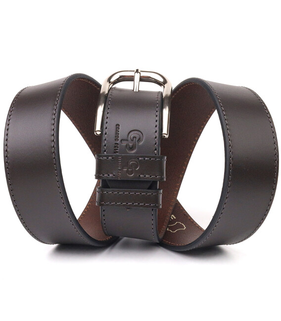 Оригинальный ремень под джинсы, из натуральной итальянской кожи, в коричневом цвете от украинского производителя. Аксессуар имеет гладкую фактуру, аккуратно прошит по краю ровной строчкой, длина регулируется в меньшую сторону. Пряжка классическая в минималистическом дизайне, производитель, использует исключительно итальянскую фурнитуру, которая не темнеет, не царапается и не вызывает аллергии. Качественный кожаный ремень станет хорошим подарком на любой праздник.