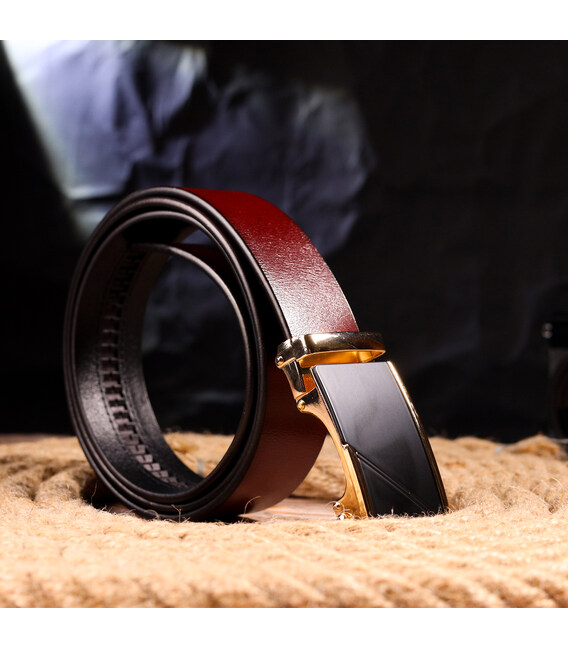 Практичный двухцветный кожаный брючный ремень из натуральной качественной кожи. Ремень можно носить коричневой или черной стороной, для этого нужно всего лишь перевернуть пряжку, на желаемую сторону. Хороший ремень способен идеально завершить образ и подчеркнуть ваш статус. Ремень изготовлен из цельного полотна кожи, имеет гладкую фактуру, длина регулируется в меньшую сторону. Дополнен ремень надежной пряжкой-автомат. Кожаный ремень один из самых удачных и нужных подарков для близкого человека.