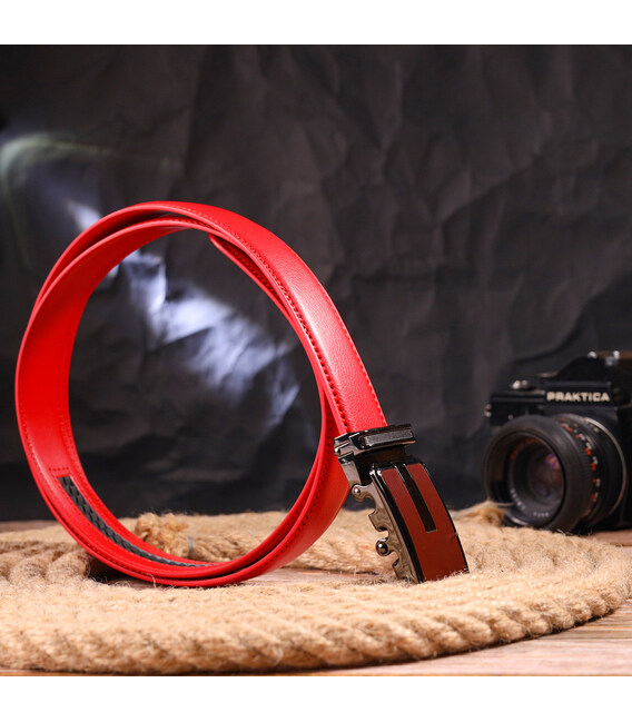 Описание Брючный ремень с пряжкой-автомат из натуральной кожи Vintage 20220 Красный